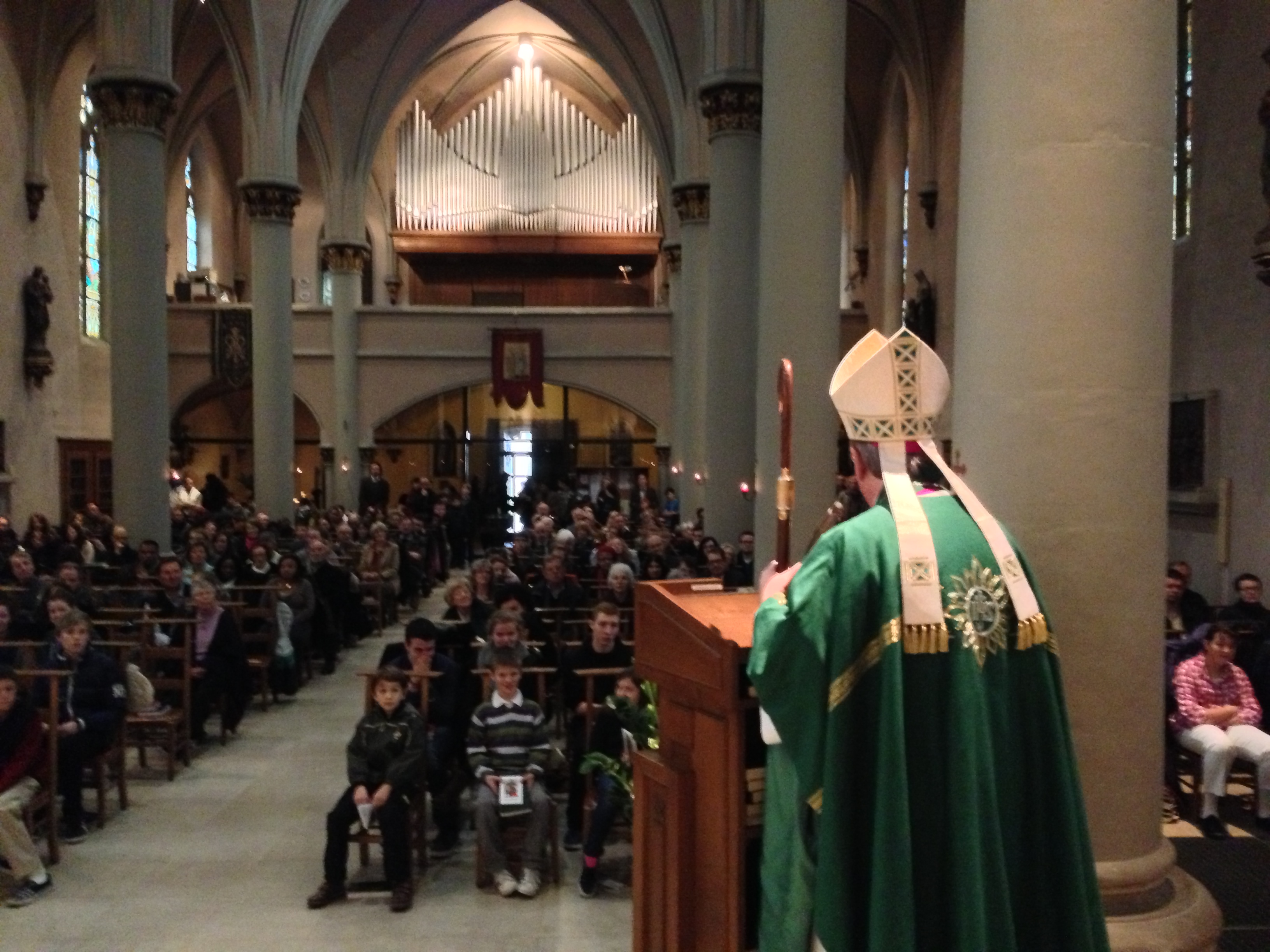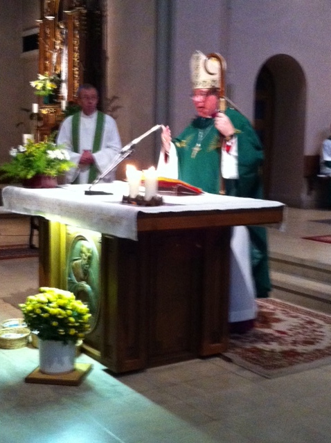 During the Mass, Père Evêque announced that from now onwards, the church of SS Peter & Paul, Hollerich, would be the home of our community. Up until then, it had been ‘loaned’ to us for Sunday Mass, being used at other times by the local Luxembourgish community. The archbishop paid tribute to the English-speaking community of what had been set up as the Paroisse Européenne. He noted that it was now one of the most international parishes in the country, reflecting the rich national mix of the Grand Duchy, and the city of Luxembourg in particular. It was no longer appropriate to speak in terms of ‘European parish’ when members of the community came not only from Europe, but from the United States, different parts of Africa (including Kenya, Uganda & South Africa), different Asian countries (including India, Pakistan, Philippines). We are now the English-speaking community of the International Parish — people from many countries, united in the one faith. The move, said the archbishop, signalled that the English-speaking Catholic community, which had its origins almost 50 years ago, were no longer visitors, but were truly at home.