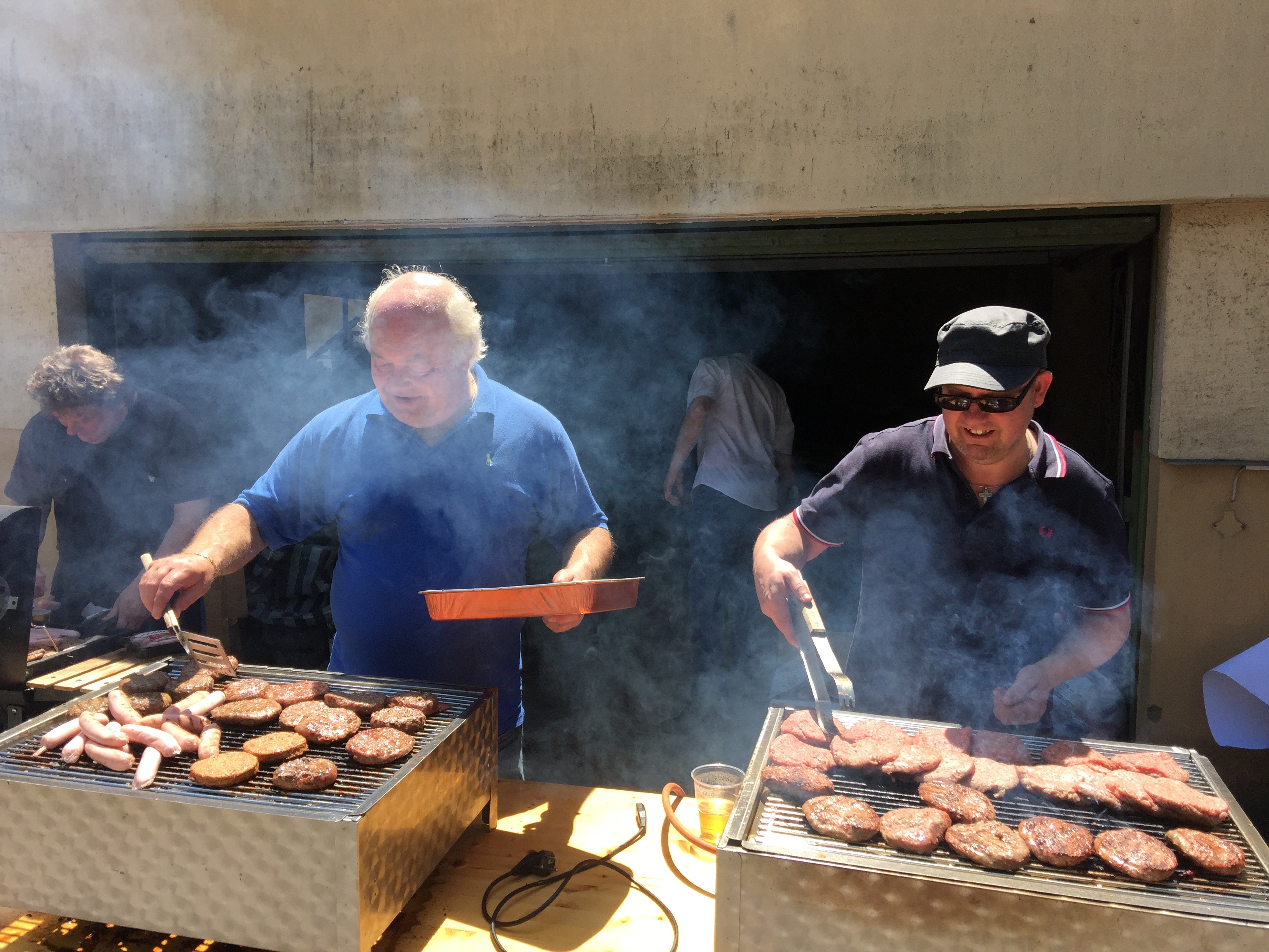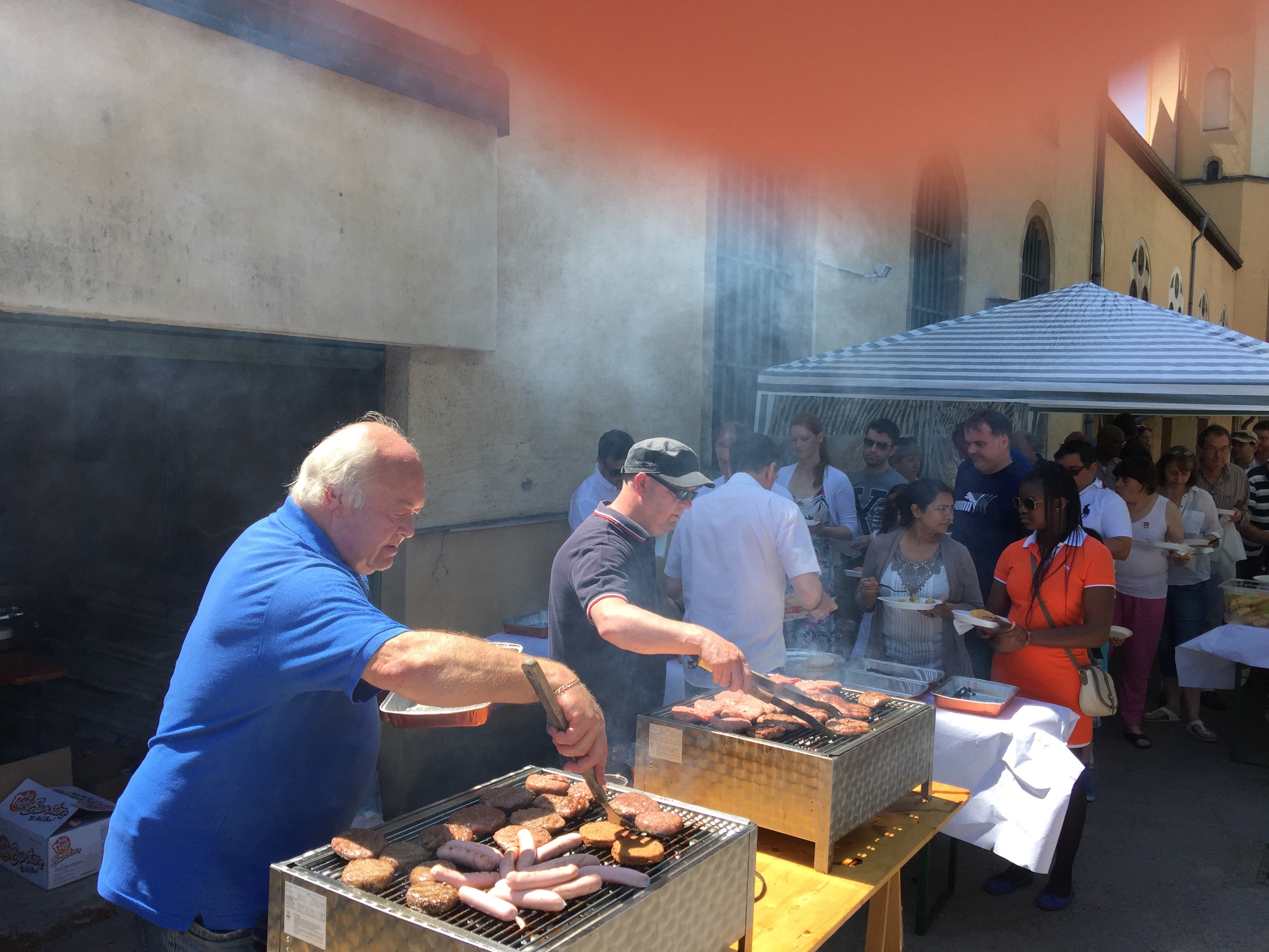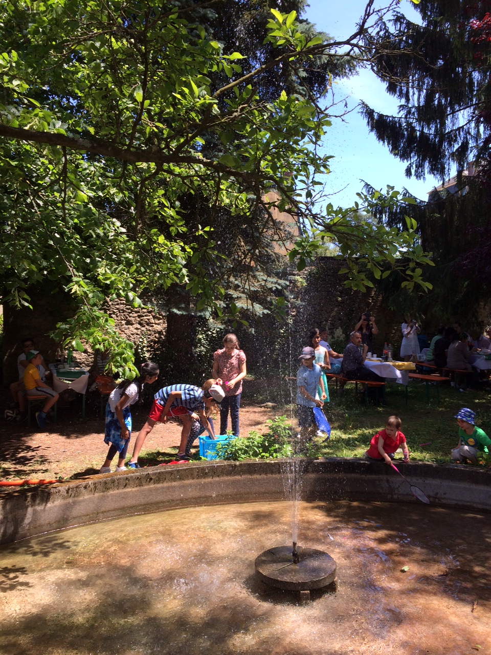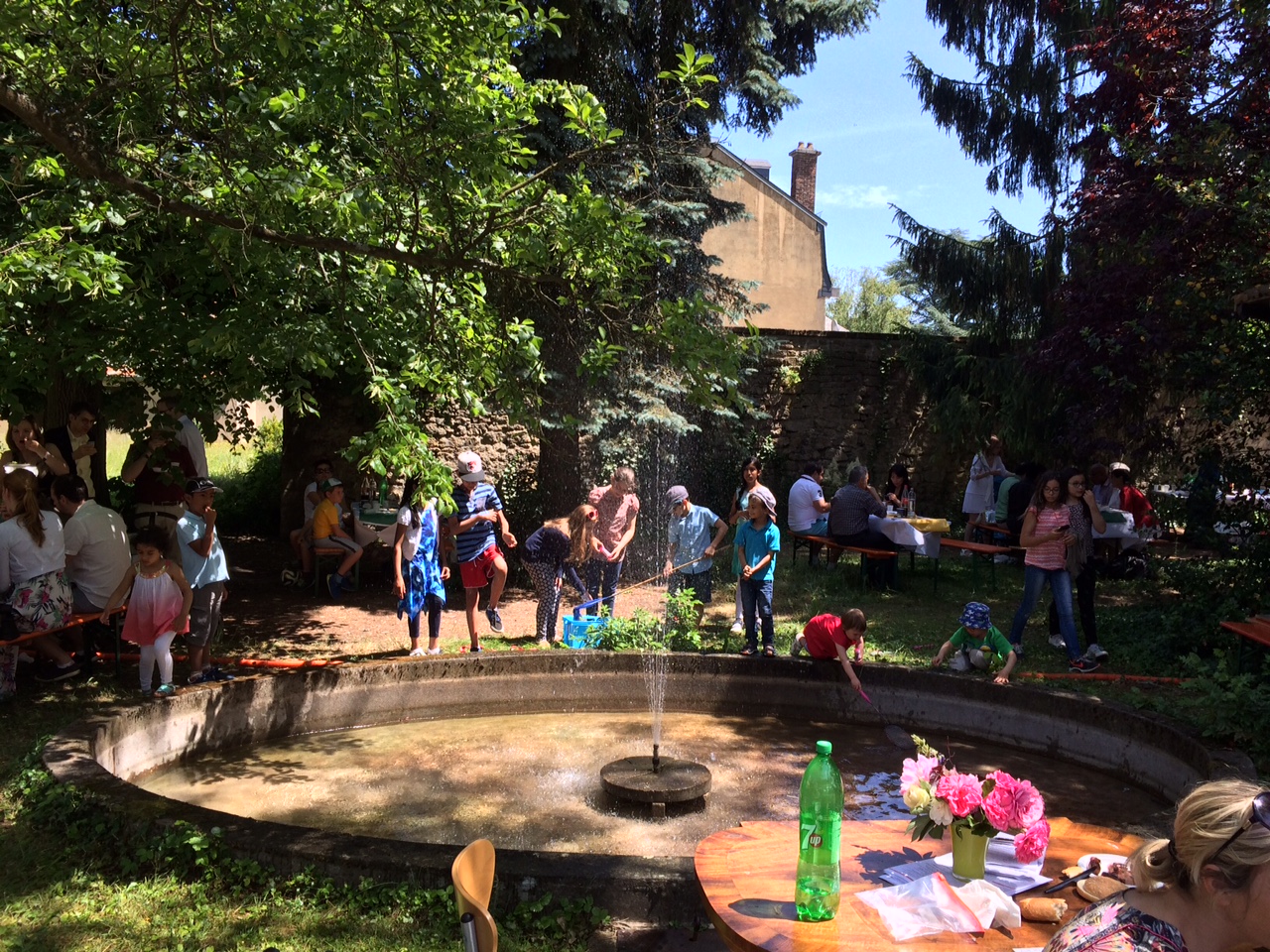 A hot, sunny day (which had defied earlier forecasts); a beautiful liturgy, enhanced by the environment and the sense of occasion; a superb BBQ, well organised, cooked and served; flowing crémant, beer, wine, soft drinks and water; a richesse of activities for children (of all ages); seeing a community working, worshipping and relaxing together; conversations between people who see each other every Sunday, but have never managed to chat before.