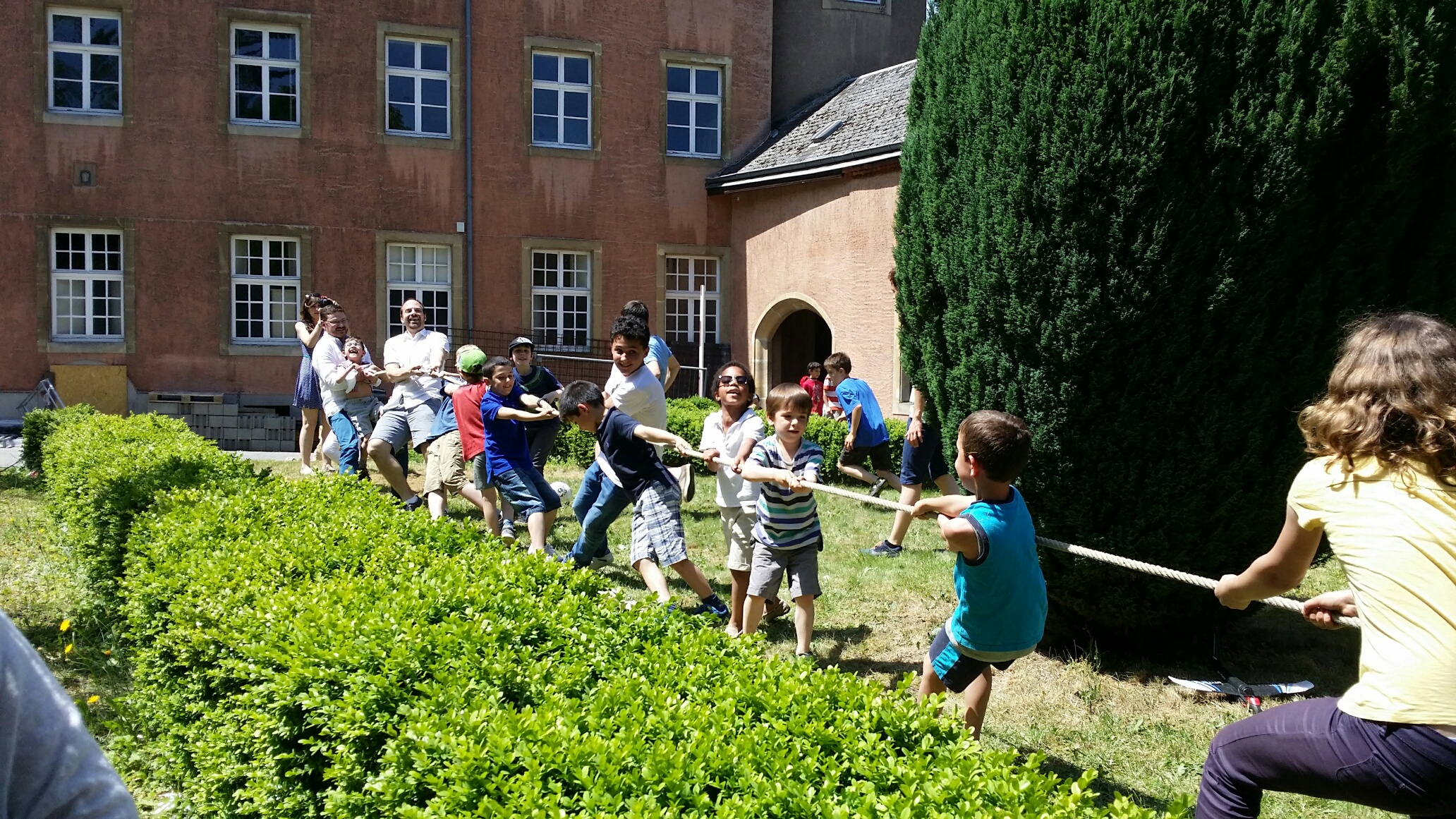 Chapeau to Robert who organised skittles, chalk, duck-fishing, tug-of-war, football, bubbles, badminton, hockey and so much more for the children — parents who brought their children were both surprised and delighted that they hardly saw them from the end of Mass until home-time several hours later. In a departure from tradition, due (thankfully) to the absence of water-guns, I did not get absolutely soaked by the children; my social baptism in Luxembourg happened after our Mass and feast in the archbishop’s garden in 2013 when I had to walk home through the city dripping wet (secretly delighted, as the preceding water-fight involving children, parents and myself had been brilliant!).