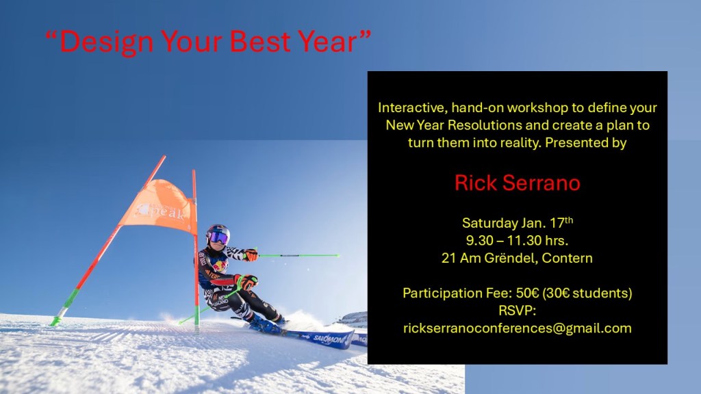 Rick Serrano is launching a workshop next week to reflect on 2026 New Year Resolutions. The workshop is called “Design Your Best Year”. See here for more info: https://www.youtube.com/watch?v=2dvI9IieRRc